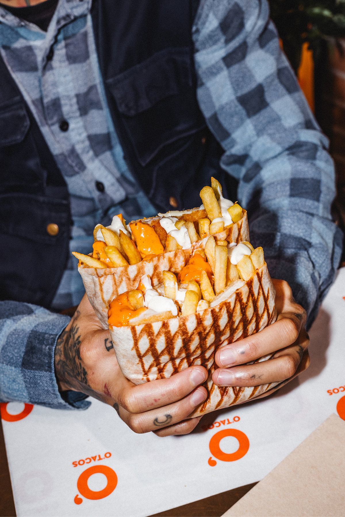 Al onze O’Tacos komen standaard met friet en onze eigen O’Tacos kaassaus.